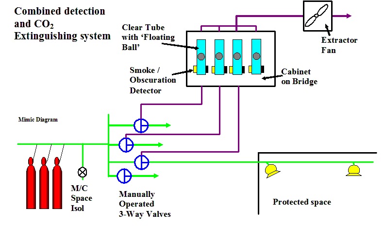 Explain co2 fixed firefighting system onboard ship with diagram explain co2 flooding system working with diagram fixed co2 system maintenance how to activate co2 flooding system entry procedure after discharge of co2 why co2 is using as the extinguishing medium.